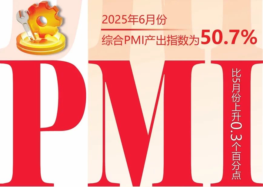 国家统计局服务业调查中心和中国物流与采购联合会近日发布的6月份中国采购经理指数(PMI)显示,我国综合PMI产出指数为50.7%,环比上升0.3个百分点,企业生产经营活动总体扩张步伐加快。
