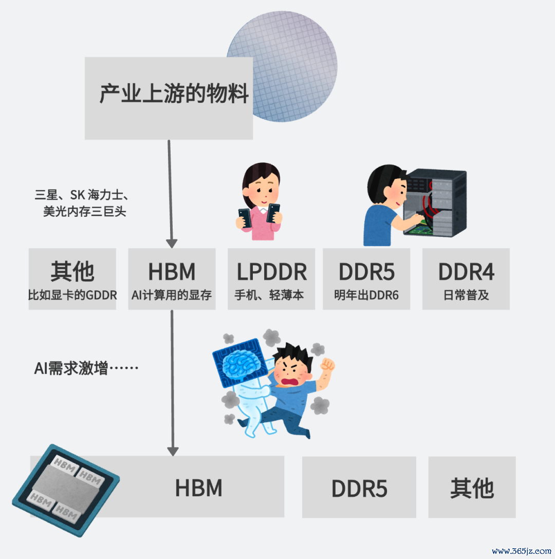 于是今年下半年开始,他们陆陆续续砍掉了DDR4等低利润的消费级生产线,甚至计划在2026年将其完全清零,全力开工,把多余产能腾给了高利润的/AI用的HBM和DDR5等产线。