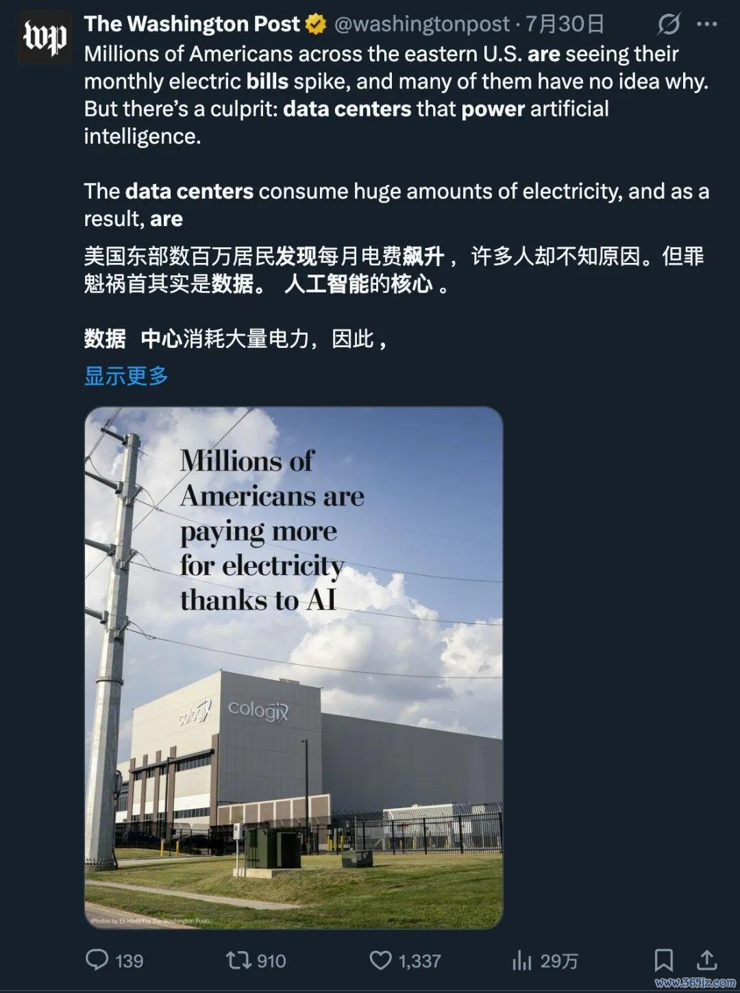 最搞笑的是什么?我之前看新闻说,美国那边因为AI导致用电量激增,很多普通居民的电费开始飙涨。