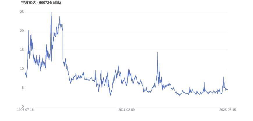 从上市首日至今,宁波富达的市值实现了13.20倍的增长云策略,显示出长期投资价值。2015年6月12日,宁波富达的市值巅峰达到220.40亿元,股价也顺应升至15.25元。而至7月15日收盘,宁波富达的股价为4.68元,市值为67.64亿元,相比峰值时期市值减少152.76亿元,市值蒸发了69.31%。