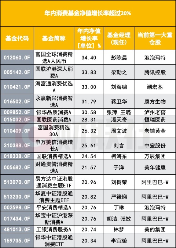 紧随其后的国联沪港深大消费、海富通消费优选、永赢新兴消费智选等产品也均录得超过30%的涨幅。从重仓股情况来看,泡泡玛特几乎成为这一批消费主题基金的“标配”嘉理证券,老铺黄金等新贵也频繁出现在前十大重仓股中。