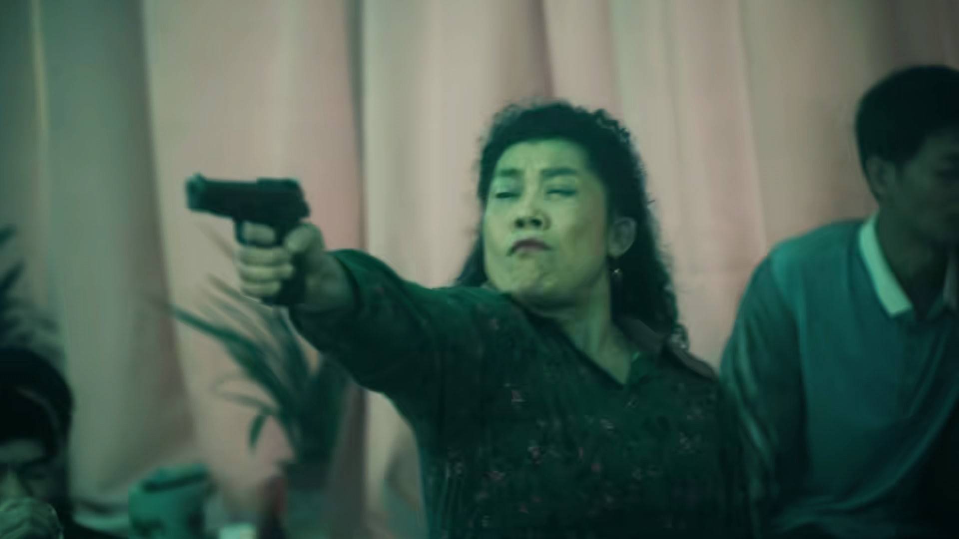 90年代,西港旧戏楼枪声乍起,一名女枪手看到戏楼外脚手架上的毒贩老鬼(张世饰)举枪就射,